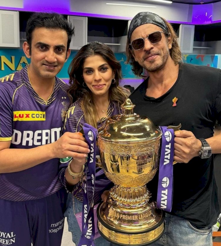 शाहरुख खान ने गौतम गंभीर और रिंकू सिंह के साथ मिलकर इस जीत की बधाई दी।