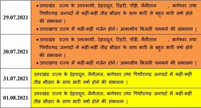 सावधान: उत्तराखंड के इन जिलों के लिए भारी बारिश का ऑरेंज अलर्ट जारी