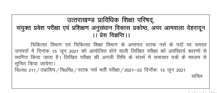 बिग ब्रेकिंग: फिर रद्द हुई 15 जून को होने वाली उत्तराखंड स्टाफ नर्स परीक्षा